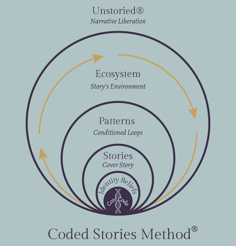 This is narrative liberation. Using the deep architecture of my proven Coded Stories Method®, we step out of the loop and become Unstoried® from specific not enough stories.